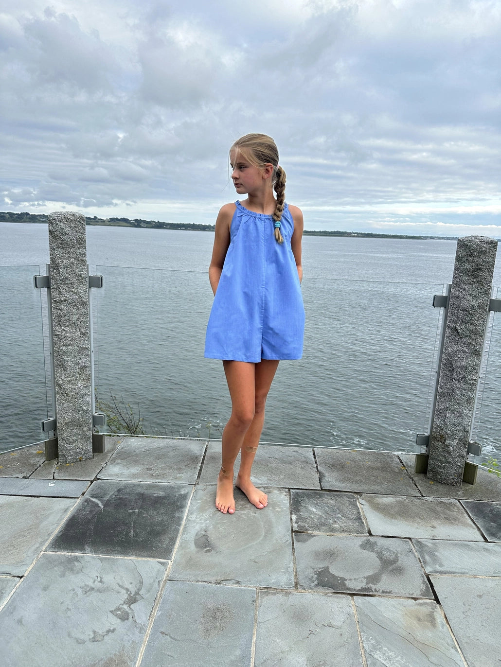 Blue Ruffle Romper from Little Olin is a delightful piece in our collection. Designed for girls ages 2 to 12, this romper is crafted from 100% cotton, ensuring comfort and style. The pink ruffle detailing adds a touch of whimsy, perfect for daily wear or special occasions. Little Olin's commitment to quality and sophistication is reflected in this unique piece, with attention to detail that's unmatched. Inspired by the founder's European upbringing, international travel, and love for exploration, this romper is a must-have in your child's wardrobe.